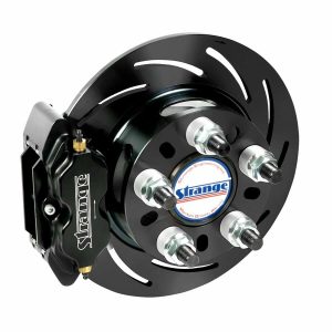 Compared to OEM Mustang brake components the Strange front brake kit offers a large weight savings and shorter stopping distances.